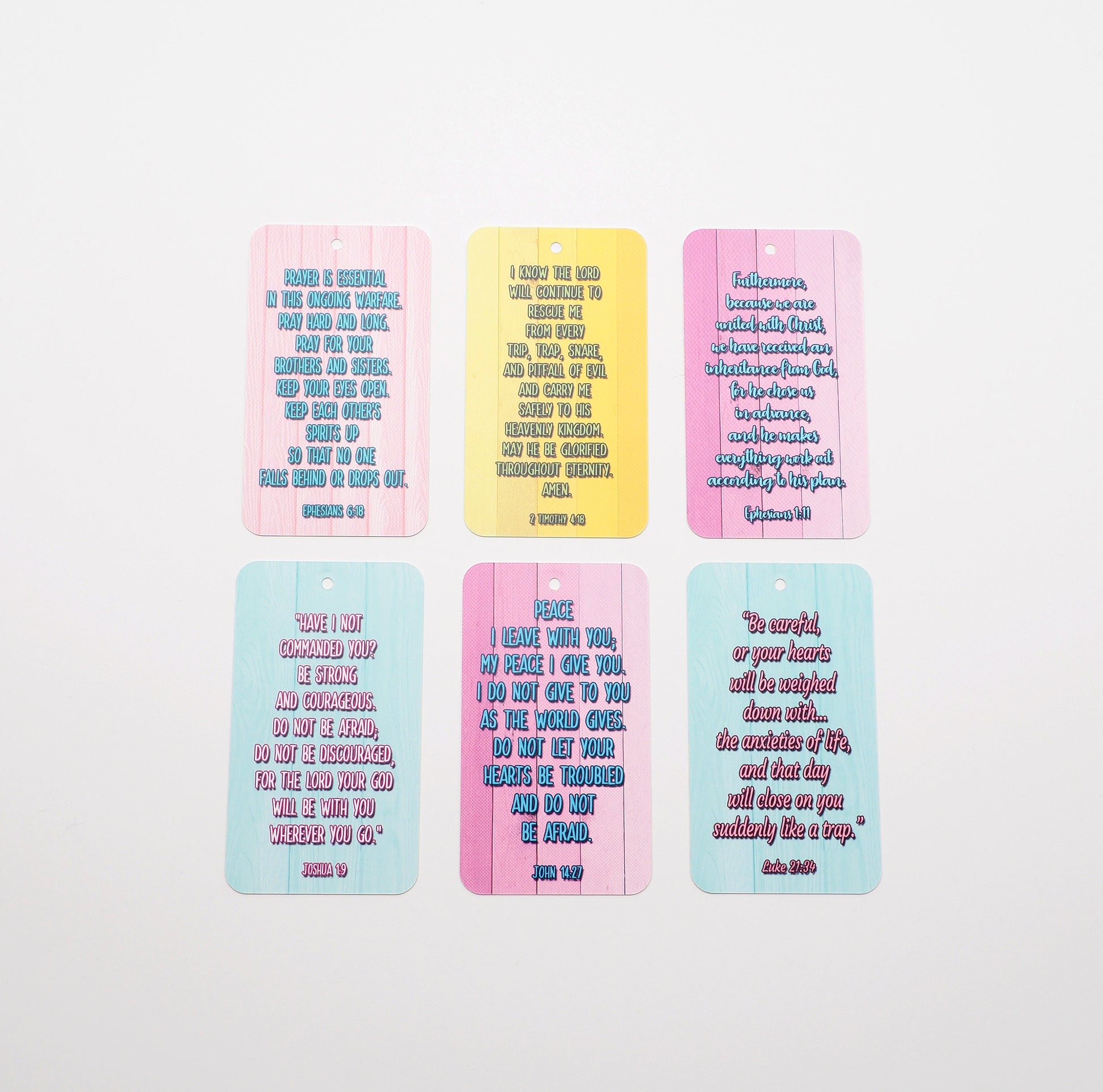 Battle anxiety and other attacks of spiritual warfare with this scripture card set of 12 premium double-sided inspirational cards!