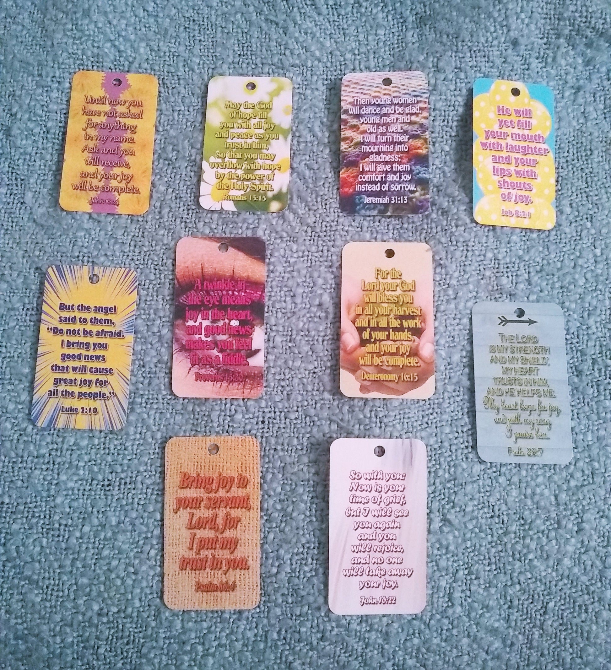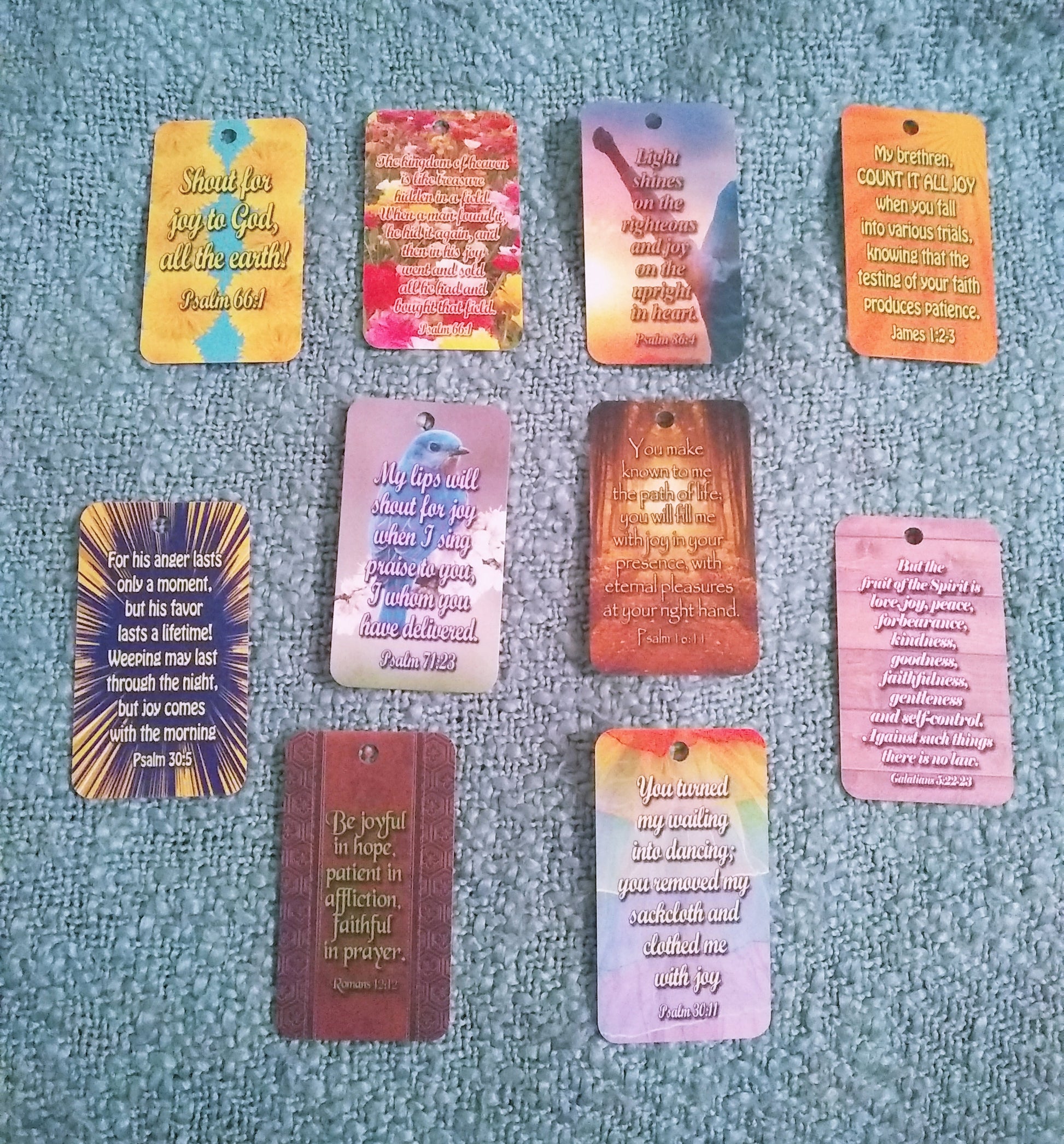 Perk up your day or spread joy with this lovely set of 10 premium double-sided inspiration cards! Complete with 20 designs showcasing joyful Biblical scriptures.